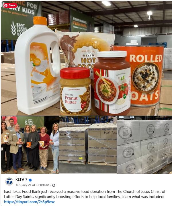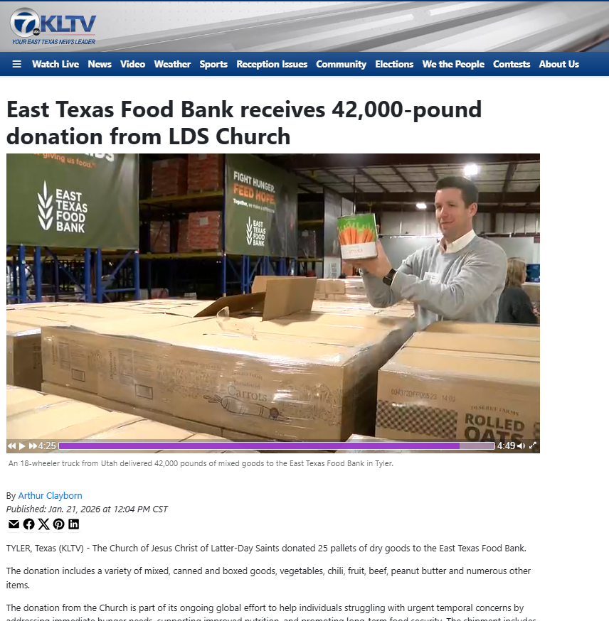 KLTV 7: East Texas Food Bank receives 42,000-pound donation from LDS Church